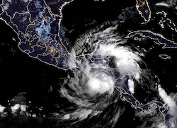 A Tropical Storm Warning remains in effect for the Pacific coast of Nicaragua from Puerto Sandino northward to the Honduras border, the Pacific coast of Honduras and the coast of El Salvador while a Tropical Storm Watch remains in effect for the Pacific coast of Guatemala said the NHC.