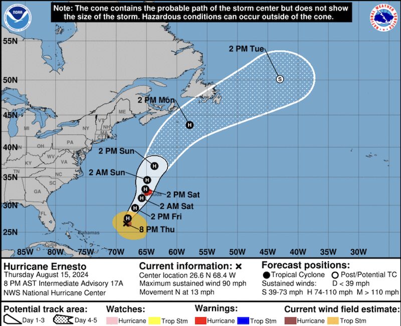 - Maps Show Hurricane Ernesto’s Path as it Heads Toward Bermuda (CBS News)