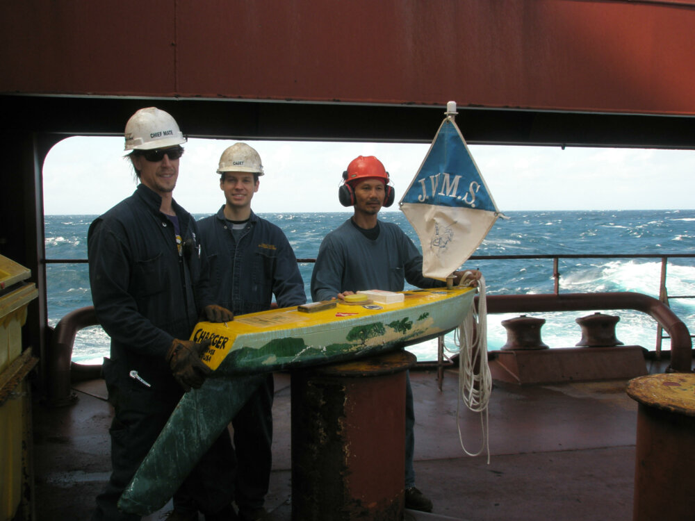 The “Charger” is a 5-foot, 45 lb. self-righting, self-steering, and self-tending sailboat that is part of the Educational Passages program run out of Belfast, ME. The vessels participate in the NOAA “Drifter” program that helps students and scientists chart and learn about the currents of the world’s oceans.