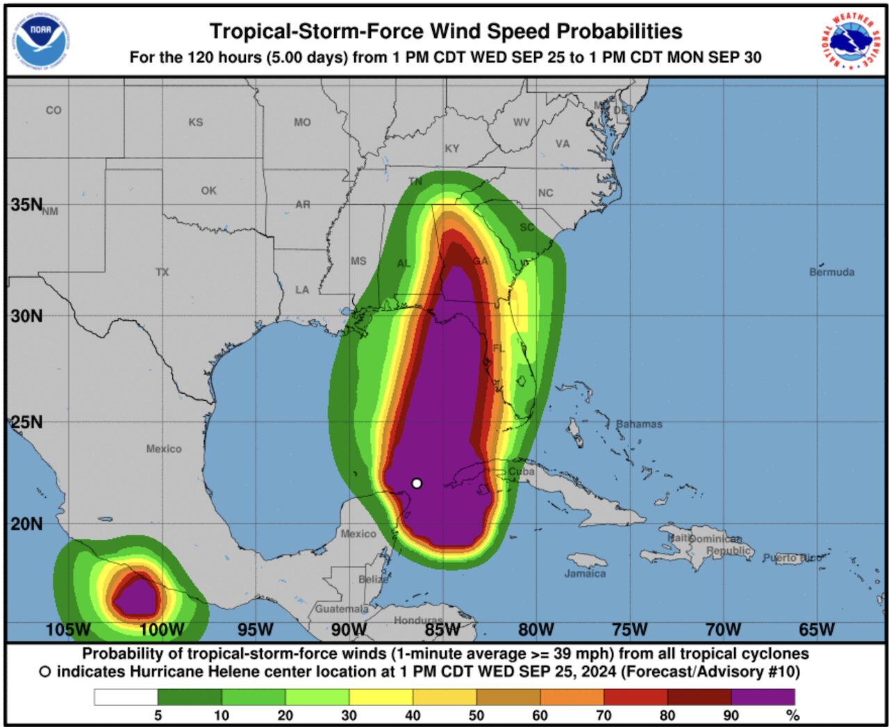 Helene was expected to become a major hurricane – a Category 3 or higher on Thursday September 26 the day it was forecast to reach Florida’s Gulf Coast, according to the NHC. Heavy rainfall was forecast for the southeastern US, with a “life-threatening storm surge” along the entire west coast of Florida, according to the NHC.