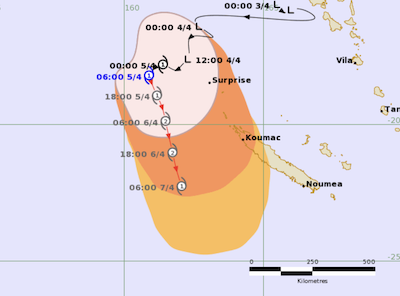 Update: April 7, 2022: The Fiji Met Service has upgraded Cyclone Fili to a Category 2 Tropical Cyclone and it is now bringing heavy rain and strong winds to the New Caledonia regions of Belep and Grande Terre.