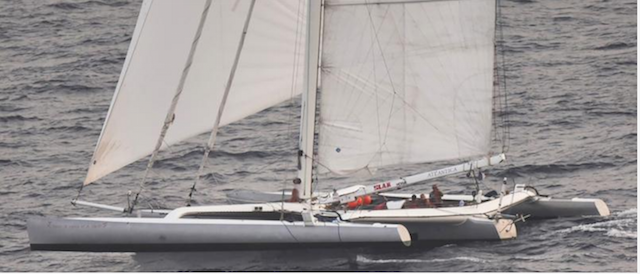 The boat was recently purchased by French racer Philippe Poupon and was being sailed from the Phillipines to the Mediterranean.