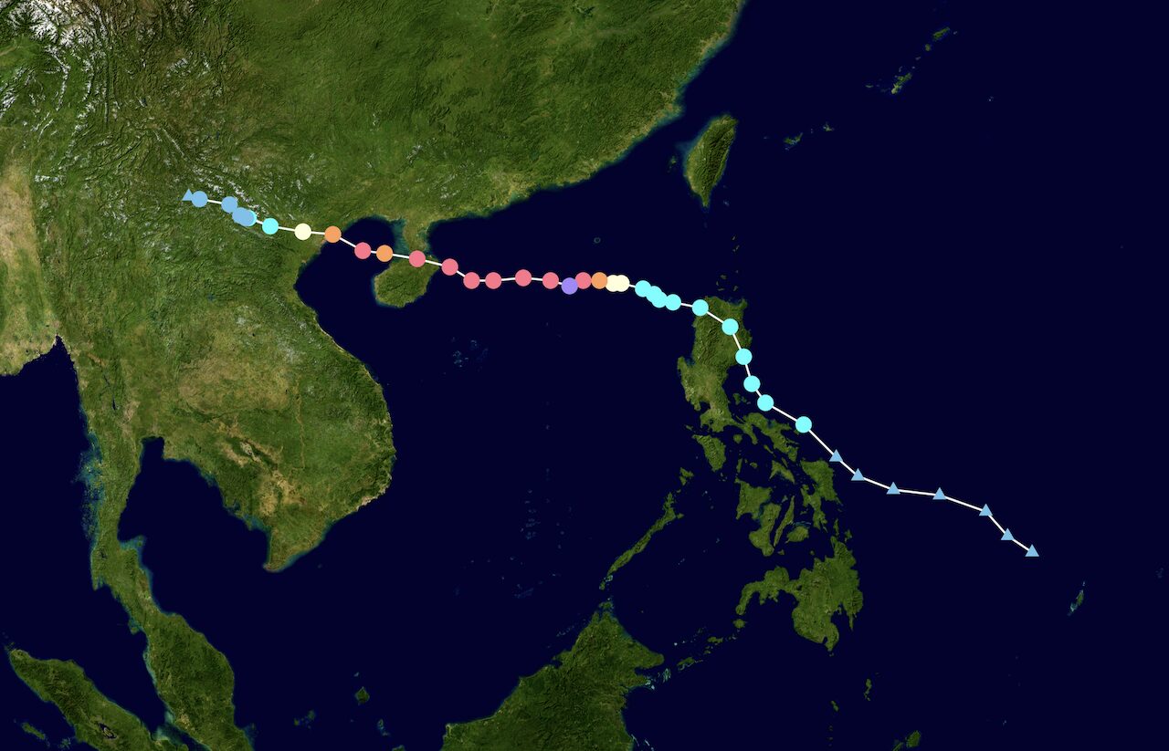 The recorded track of Typhoon Yagi. Image from Wikipedia Public Domain.