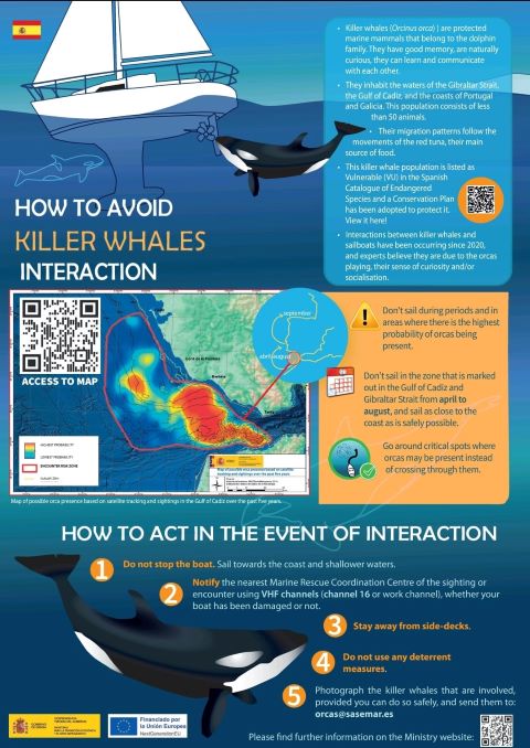 The Spanish Government have issued new guidelines on how to avoid orca, and what to do in the event of an interaction (see poster image).