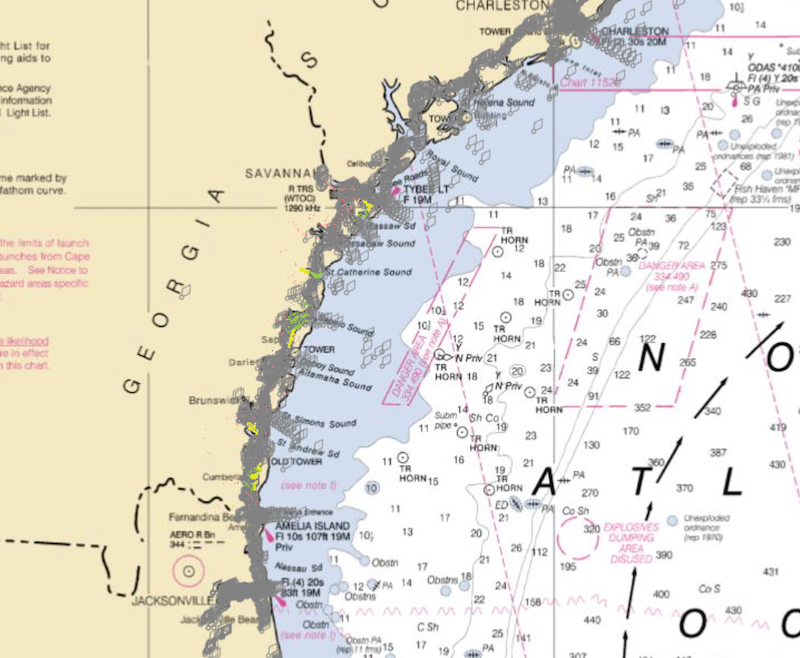 The state of Georgia on the east coast of the USA has more than 160kms of coastline and is a popular destination for cruisers heading north from Florida. The Georgia portion of the Atlantic Intracoastal Waterway (AICW) has many anchorages and the coastal marshlands are considered a vital natural resource for the state’s economy.