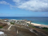 Georgetown is the main settlement on Ascension Island and Clarence Bay is the harbour, located on the west coast. This tiny island is volcanic and its lower slopes are of volcanic ash with little vegetation. Green Mountain, in the center of the island, rises to 2,818 feet and is now covered with plants and shrubs introduced in the 1800s.
