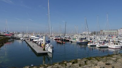 Visitors' berths (pontoons N, M, P, and Q) are in the marina at Port Chantereyne, which is in the SW corner of the Petite Rade (see a photo taken by SY Suwena). It is very rare that there is not a free slip here, but there is a waiting pontoon with water and electricity (although not attached to the shore).