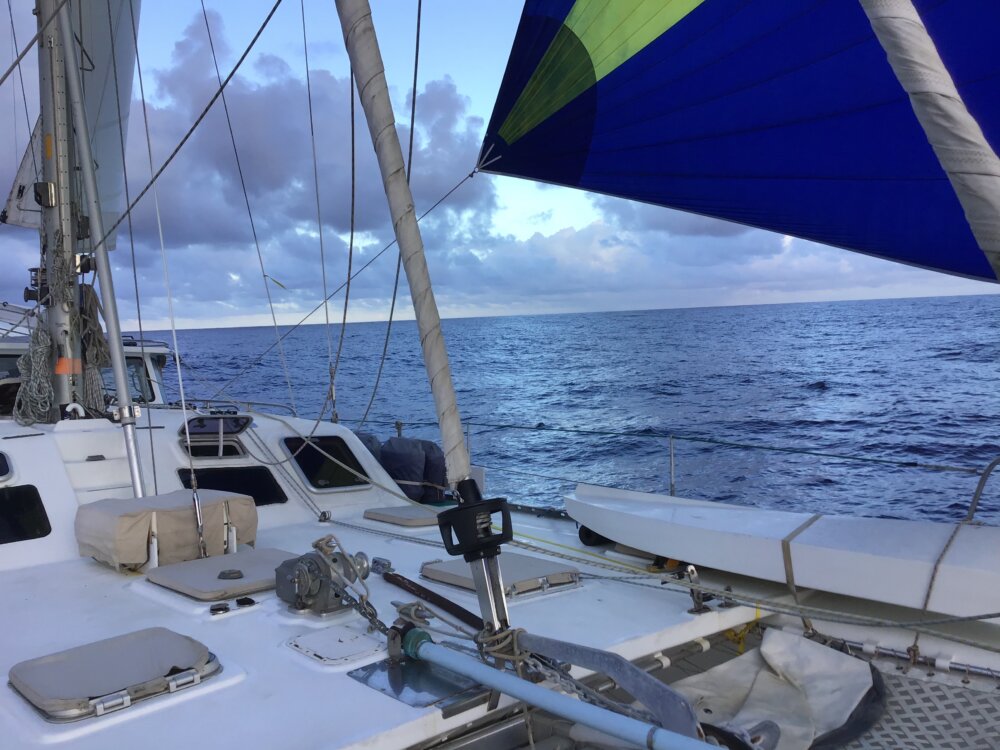 The Equatorial Counter Current created more problems than expected because we did not have enough wind to overcome the current. Our Iridium Go with PredictWind and current information was very helpful. We stayed in contact with Des Carson the entire time but he could not get us more wind either.