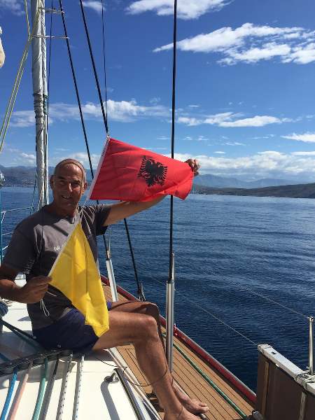 - Raising the Albanian and Q flags as we enter Albanian waters.