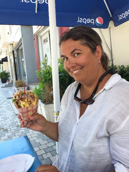 - Maree enjoying a “gyros”.
