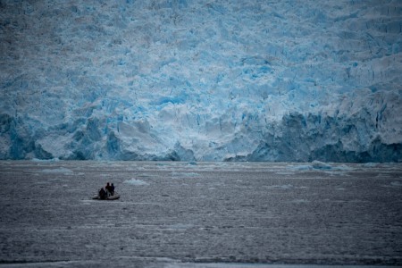 The wind has shifted 180 degrees, was blowing gale force, and all the ice that had been pinned up against the glacier was now bearing down on us with the both boats on a lee shore. The alarm was raised and all hands were on deck manning the ice poles.