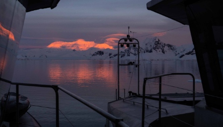 We made Yankee Harbor around 03.30. The adrenalin of being in Antarctica would not be denied. The dinks were in the water as a beautiful purple, pink and red sunrise highlighted thousands of Gentoo penguins on a ridge overlooking the harbor.