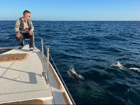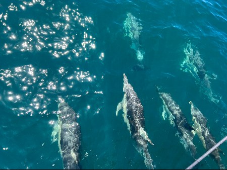 During our approach to Port Lincoln at about 10nm off shore, we started seeing odd looking aquaculture type structures in the distance. We spotted netting extending slightly over the surface of the water. We soon saw a second then a third of these structures and we dropped our sails and swapped to motors to keep a better eye and give us faster reaction times. With a closer look, we realized that what we were seeing must be nets full of tuna and we were surrounded by them.