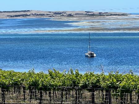 After Robe, we sailed to Kangaroo Island. We initially stopped at American River which was sheltered, but not particularly interesting. We then moved to Kingscote which had a nice anchorage in front of town, but we chose to move around to the anchorage at the bottom of the hill from Bay of Shoals winery, which was an easy walk and lovely to visit. The owner of the winery has competed in the Sydney to Hobart sailing race many times.