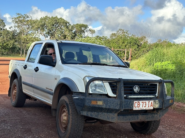 There is no regular bus service. The road is dry red, the temperature so hot, the dust, the potholes…..this is not the place for a bike run to the town. To get us started Rick gave us the key to an old pickup which belonged to Dave – it was rusted but doing well and it was for free! So, we could go and do our many errands during our stay.