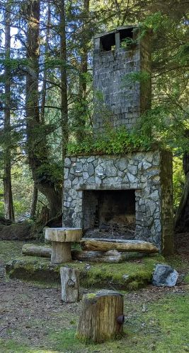 - This fireplace is all that remains of a hotel that once doubled as a brothel on Clarke Island.