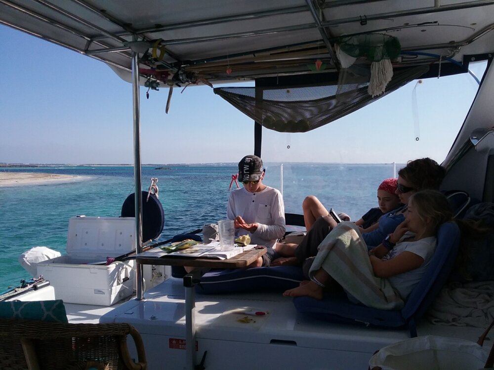 On March 27th we moved our boat further south as advised, and anchored off a private island with about three weeks of food onboard. One local boat was anchored, and one family was living inland as caretakers of the private island.