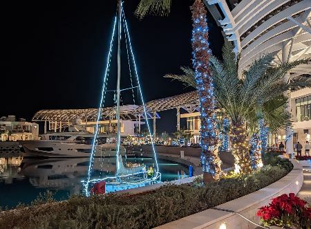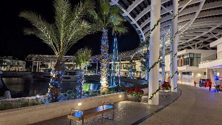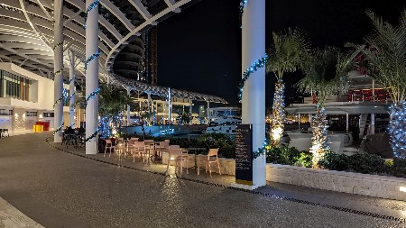 As a new marina, everything is pristine. The water is beautiful and clear. The people are friendly and helpful. We can report that in January through March 2, 2023, one of the restaurants is only open on Saturdays and Sundays due to lower “traffic” in the winter months. The ice cream shop is scheduled to reopen this month. A sushi restaurant appears to be on the brink of opening as well. The supermarket is open every day. The marina creates a Christmas Village in December when the marina is beautifully lit and they have entertainment and an open market several days a week.