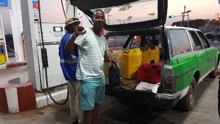 We found the best way to get clean diesel is to ask your agent to get a Taxi to take you and your jerry cans to the petrol station in town. Most taxis won’t take diesel in their cars so Ahssan uses a guy with a really old taxi station wagon but he charges more for the round trip. The diesel we purchased was US$ 1.12 per liter. We used our own jerry cans and we paid the Taxi about US$20.00 round trip.