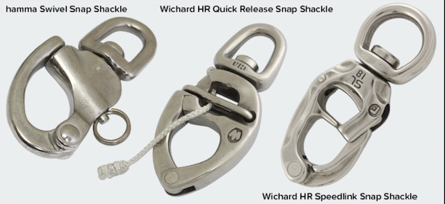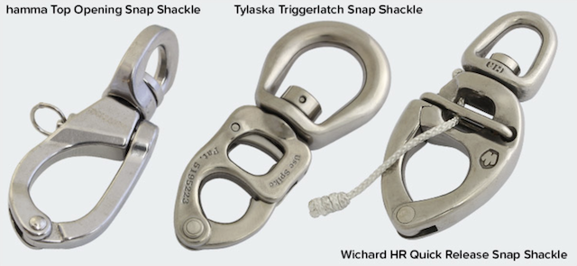 - Trigger-latch snap shackles take it a step further, enabling release under high load with the insertion of a fid or spike, a real asset when conditions are lively.