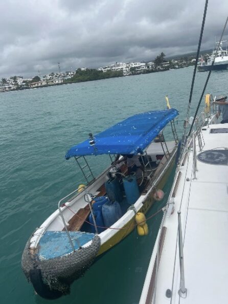Fuelling up in Galapagos is interesting! There is fuel available for very large yachts (100’ plus) at a dock at Baltra (not somewhere that foreign yachts are generally allowed to go) but otherwise the only fuel available is in a boat that comes alongside but only in two places, Puerto Baquerizo Moreno at San Cristobal and Puerto Ayora in Santa Cruz.