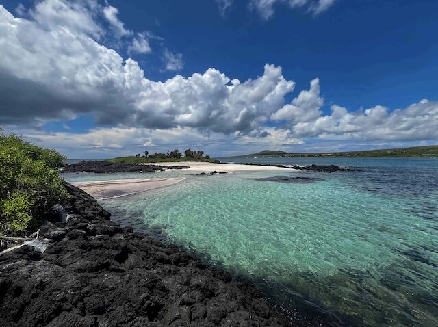 All the snorkelling we did was over a rocky seabed, or sand; no coral reefs! But there are plenty of large fish, large schools of fish, and green turtles and you might also be underwater with sharks, rays, iguana, octopus, sea lions, penguins, and even sea horses depending on the site.