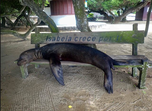 Sea Lions are present in all the four anchorages and use the boats to rest (San Cristobal being the most active for this). If you have a sugar scoop transom or have a catamaran with stern steps, then they can easily board your boat (but they can also jump many feet if they wish to reach a platform!). Use boards, fenders, buckets, etc. to keep them off your boat (or keep them to the rear steps only) as they will make an amazing mess (rinse off with sea water each morning to avoid the brown stains). In our case one managed to bypass our defences and made it to our cockpit and broke our cockpit table. They are huge/heavy creatures! The local boats use a combination of netting and razor wire to deter sea lions!