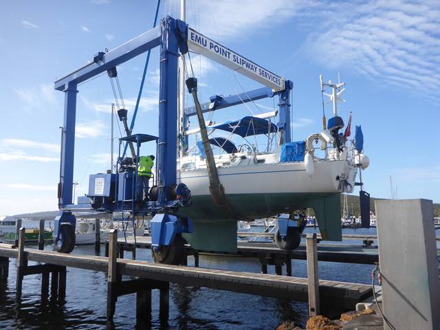 On the recommendation of local professional sailor Mark McRae of southernoceansailing.com.au, (0428429911), we hauled Zoonie onto the hard at Emu Point Slipway Services run by Darren and Linda Russell (0427 426272) where we found ourselves in a sheltered yard knowing Zoonie would be safe from the strong winds on the west coast and at a price we could afford.