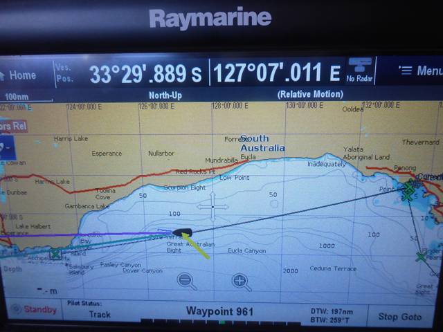 As these winds reach the barrier of the vertical cliffs around the northern Bight off the Nullabor they strengthen, so it is a good idea to leave from somewhere up the eastern side like Streaky Bay or Ceduna and go straight across to the Recherche Archipelago (east of Esperance), so that is what we did.