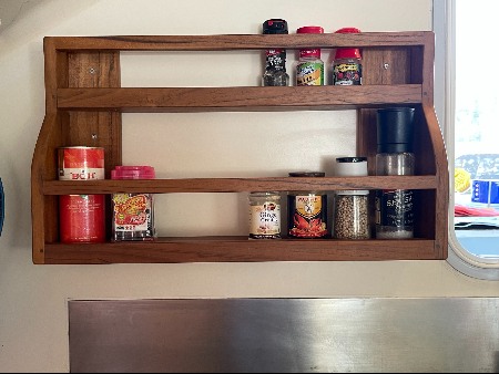 SY Manuka’s new teak spice shelf. (c) Dominique Cabarroque