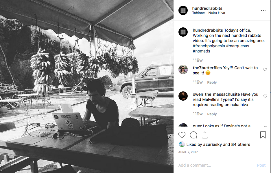 They operate a small research studio called Hundred Rabbits, where they do experiments in resilience and self-reliance using low-tech solutions.