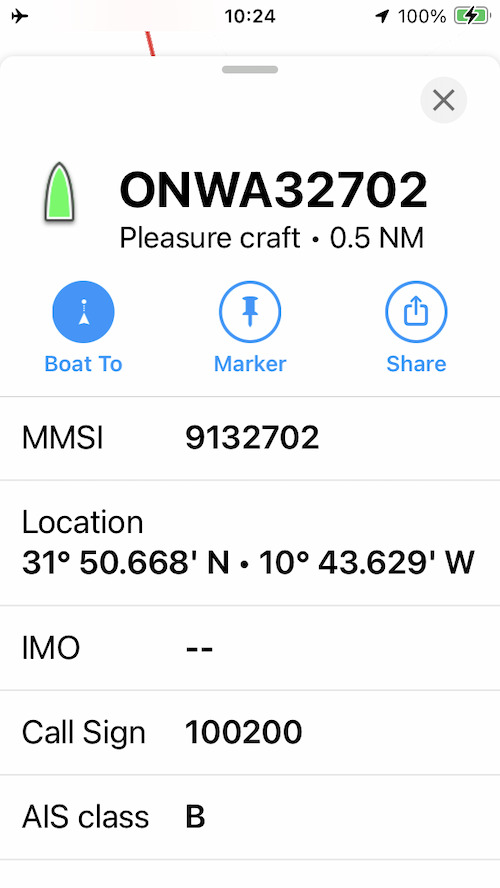 Has anyone else encountered anything similar off the coast of Morocco? This is a popular route for sailboats and if this is more than a one-off then we should be sharing the details in the community.
