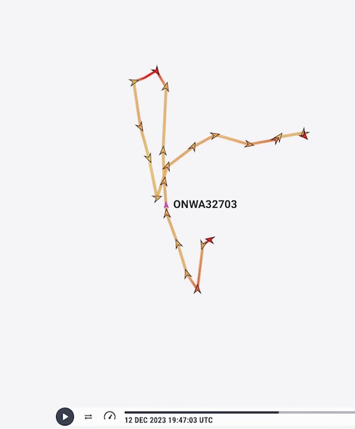 On Tuesday 12th December I was sailing SW on a passage from Spain to the Canaries. At around 0830 I noticed a boat on my AIS, heading SE and due to cross my course quite close to me.