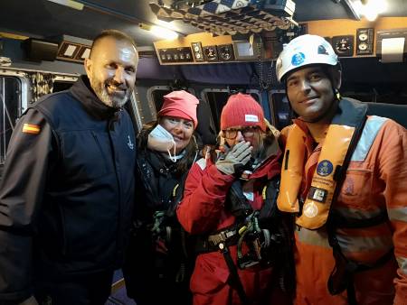 - Raija and Paula with the Spanish sea rescue team on the night of the Orca attack.