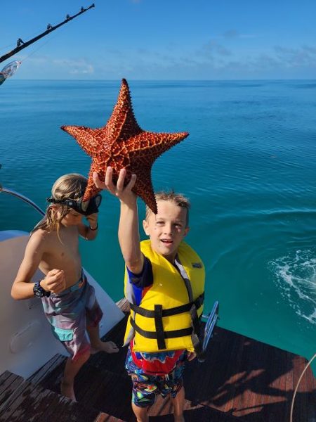 We have learned to keep watch, tie knots, free dive, do flips off of the boat, drive the dinghy, spear fish, speak a little bit of Spanish, and clean conch.