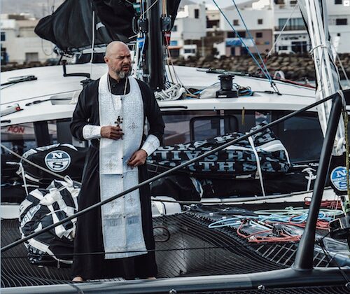 Sailing catamaran “5Oceans”, a Marsaudon ORC 50 crewed by Russian orthodox priest Oleg Dudkin and skipper Dmitry Kuznetsov, took on the Red Sea passage to the Mediterranan due to timing and commitments after crossing the Atlantic and Pacific in a two year circumnavigation. Oleg wanted to sail around the world after retirement and has managed to do nearly all the legs, but he also wants to make sailing possible for anyone. The boat therefore has 2 permanent crew members and the remaining crew places are taken by sailors that join for a leg (or more).