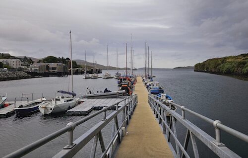 Sarah is the Harbour Master: Email: info@castlebaymarina.com, or contact by Ph: 01871 810 925. The Community Shop has great local foods and books. The Sports Center is open from 4pm – 7pm, for swimming, sauna and showers. Craigard Hotel has a great dinner and there is a excellent Co-Op grocery store.