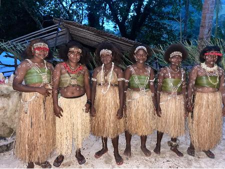 The chief of the village, John Ruka, is almost obsessed by yachts! He welcomed us with a flower display that was better than anything in a florist shop back home. On our last night he prepared a mini festival for the three of us, with welcome drinks, a meal on flower plates and Kastom dancing by a fire. It was all very special and a lot of laughs. John can arrange food, dancing, BBQs, tracking or be a guide for a tour of the island, villages or even further afield.