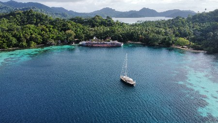 Try to visit here when the SE winds are not too strong. Also, do not anchor in the pool next to MS World Discoverer, no matter how tempting it looks. We dived the pool and the sand holding to the south is a terrible sponge which offers no holding to even the best anchors. This leads you to drag onto the coral to the north of the pool, which is a stunning field of endless plate coral that is so delicate a chain would wipe out large swathes. The only option in this pool is to drop anchor by the beach and stern tie to the large tree to the north of the wreck. This could be amazing, but we didn’t try it.