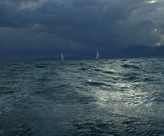 We were sailing along on passage to Roccella Ionica on the south coast of Italy, it was 21.00, the night was dark and visibility poor. We were north of Capo Spartivento when we heard the sound of powerful engines coming from behind. We could see no lights. As this vessel closed on us within a few meters we were becoming very concerned, then all of a sudden we were lit up by a powerful searchlight. We were studied for about ten minutes, no radio contact, no requests to board us, then the light went out and the vessel took off at high speed into the dark with no navigation lights on. We assumed it was the guardia costiera?