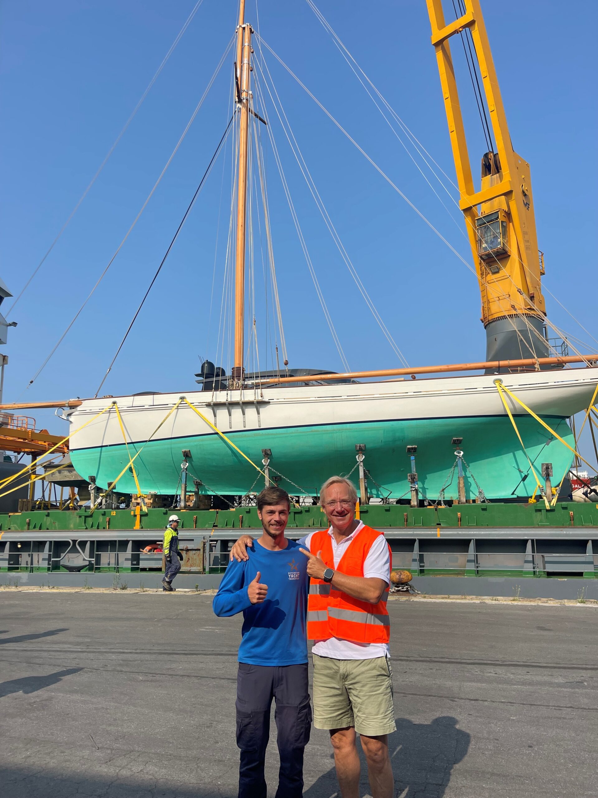 Yet getting her there was no simple passage. While Hessel dreams of coastal voyages, undertaking the delivery sail from the Netherlands wasn’t feasible: her systems were still being finalized, the sails unrigged, and the route unfamiliar. To bring her safely south, Hessel turned to Sevenstar Yacht Transport.