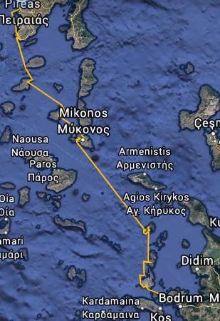 With two Australians I met in a bar in Turkey as my crew, our first stop, just three hours out of Turgutreis, was the Greek island of Kos. On our stop to check into the new country, stopping for Gyros, I met two young men – a Scot and a Welsh – who had just spent a year in Afghanistan teaching English and were biking their way back home. They shyly wondered if there might be room on our boat? I invited them for dinner to see how we might all get along before committing.