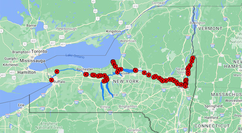 The route roughly parallels the I-90 (highway), and major railway lines. For much of its length there is a cycleway/trail that is busy with others enjoying the route (see Empire State Trail).