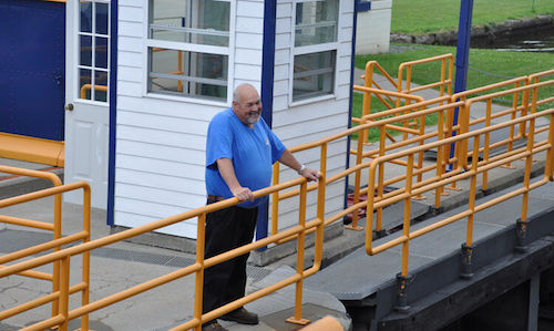 Each lock has a couple of ladders on either side (just in case someone falls in) .