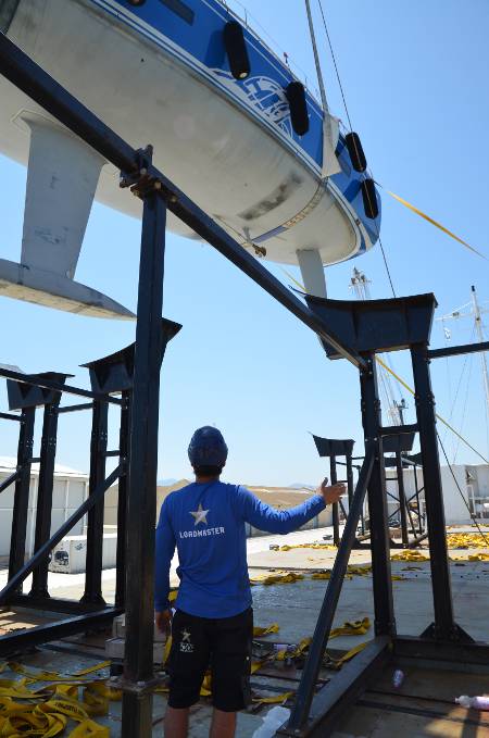 - Mark lifting points on the hull in a way that both the loadmaster and the diver can see them and possibly mark points where the yacht should not be lifted. Drawings of your yacht will have lifting points shown, or ask the loadmaster who can try and find out. Mark them with a piece of tape.