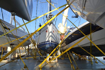 - Ideally remove the genoa, main sail, and any sail covers and store everything inside the yacht. If you choose to keep your mainsail on, make sure it is tightly secured. If a sail cover or other wrapping becomes loose during transport, not only will it be ruined but it can also cause damage to a neighbour’s yacht.